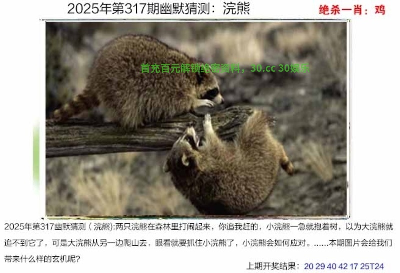 | 317期家野两肖【野兽+羊鸡】开:鼠18准 |